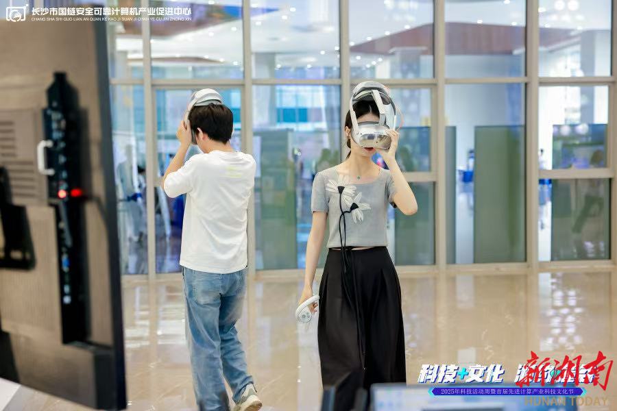 活动现场,各类充满科技感的沉浸式交互体验项目备受瞩目。在野子科技设置的文旅VR体验区,依托国产算力,马王堆、铜官窑等湖南著名历史旅游景点以极致高清、稳定流畅的画面呈现在用户眼前。只需通过计算机操作,参观者便能“云游”湖湘大地,感受千年历史文化的魅力。