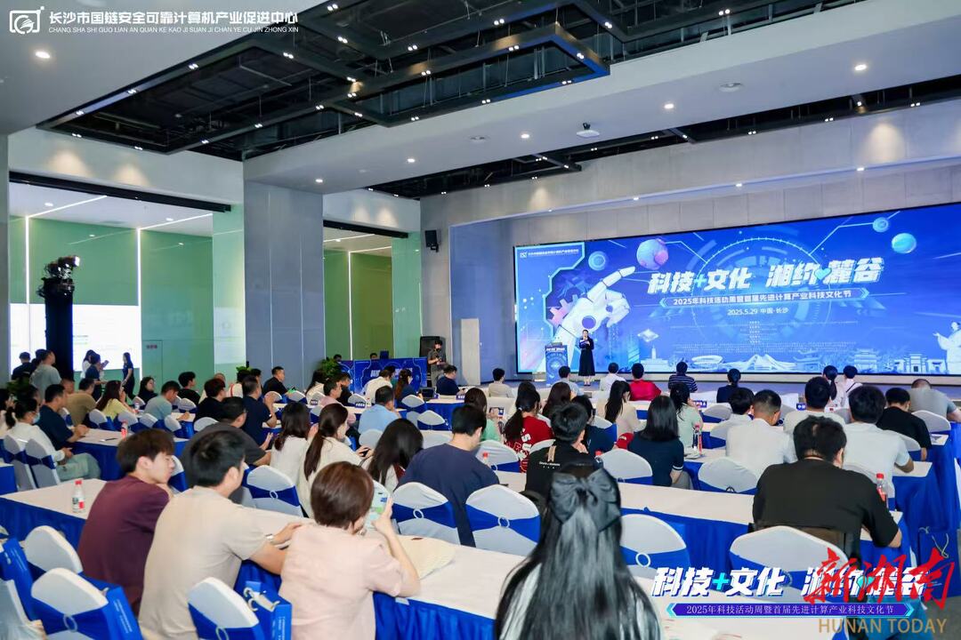 5月29日,由国家新一代自主安全计算系统产业集群主办的2025年科技活动周暨首届先进计算产业科技文化节在长沙举行。此次活动以“科技+文化 湘约麓谷”为主题,通过高峰论坛、展厅科普、非遗集市等多元形式,吸引超1000人次参与,超50家企业展示前沿科技产品,开启了一场“湖湘文化立根,自主计算铸魂”的创新盛宴。