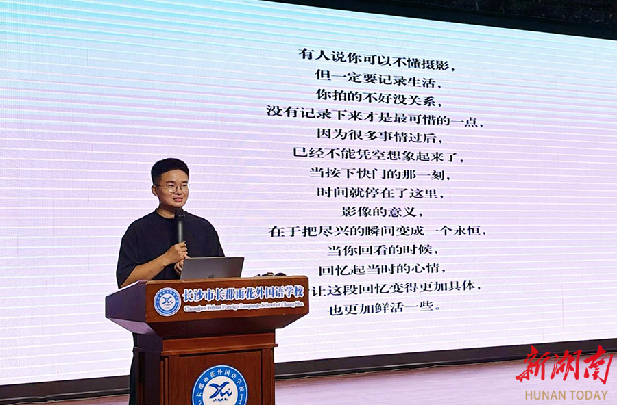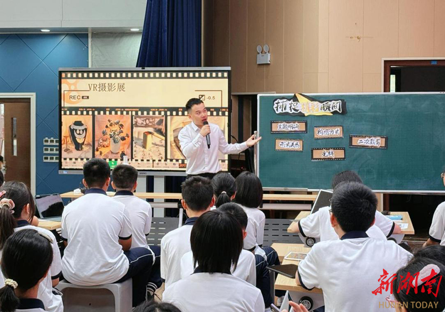 湖南日报记者辜鹏博以《人生海海,不如摄影》阐释摄影美育路径;市教科院教研员詹蓉解读新课标下“用教材育人”理念;核心课例《用镜头记录校园生活》构建PBL教学闭环,三节递进式课程实现从构图基础到微电影创作的能力跃升,VR线上展览、动态影像叙事等创新形式激活课堂;师生研讨环节中,学生以“镜头即语言”诠释成长收获,教师就素养导向教学达成共识。