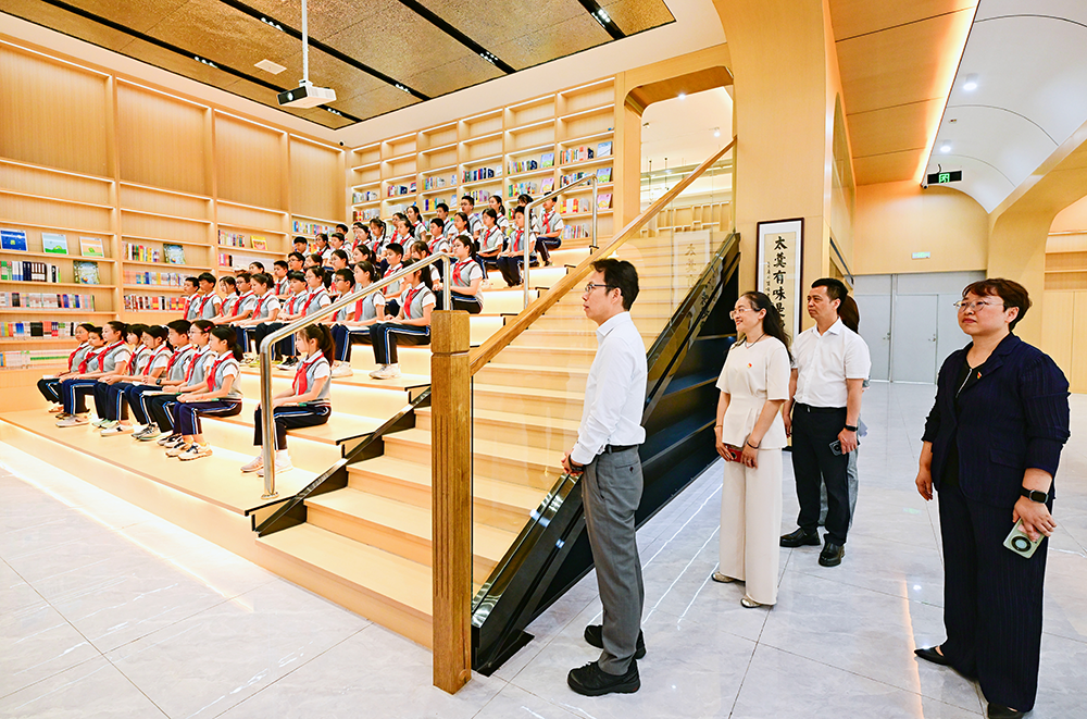滴水湖学校坚持“五育”并举,积极搭建平台,开展特色活动,促进学生健康成长、全面发展。胡贺波来到学校,参观学生心理健康美术作品展,实地了解孩子们读书分享会等活动情况。他说,少年儿童是祖国的花朵,代表着未来和希望,要把德育贯穿育人全过程,引导学生树立远大志向,培养良好意志品质。要坚持制度变革、模式创新,加强高素质专业化教师队伍建设,推动义务教育优质均衡发展,努力办好人民满意的教育。