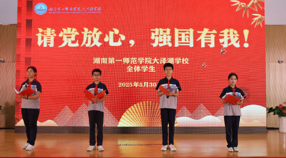 为庆祝“六一”国际儿童节,展现学校素质教育成果,湖南第一师范学院大泽湖学校于5月30日下午在善治楼三楼体育馆举办“温润少年感党恩,强国有我创未来”主题文艺汇演。活动通过丰富多彩的艺术表演形式,将思政教育与艺术教育深度融合,为全校师生带来了一场充满爱国情怀与青春活力的节日盛会。