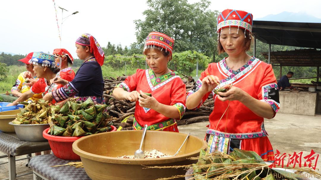 在该县千家峒、源口、松柏等瑶族乡,漫山遍野生长着粽叶,为制作粽子提供了优质的天然材料。瑶家妇女传承着祖辈的精湛工艺,精选本地土猪肉、土板栗、富硒糯米、鸭蛋黄等食材,制作出的“瑶山香粽”风味独特,在电商平台俏卖。“熬了两个通宵,煮了43锅,端午前1万个粽子顺利交货。”瑶民郑菁采摘了100多公斤粽叶,全家上阵包粽子,仍然供不应求。