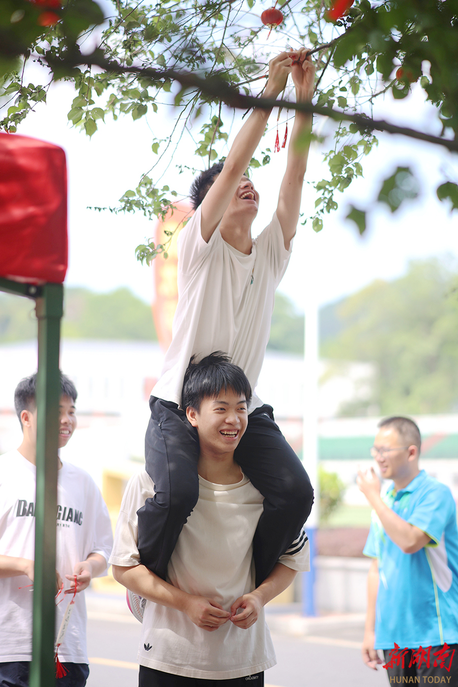 6月6日,道县道州玉潭(东阳)学校,考生触摸粽子,寓意“高中”。当天,该校举行高考送考仪式,通过夹道欢送、师生击掌、触摸粽子、过“状元门”等形式,予以鼓励,暖心送考。 蒋克青 蒋凭姣 摄影报道(湖南图片库)