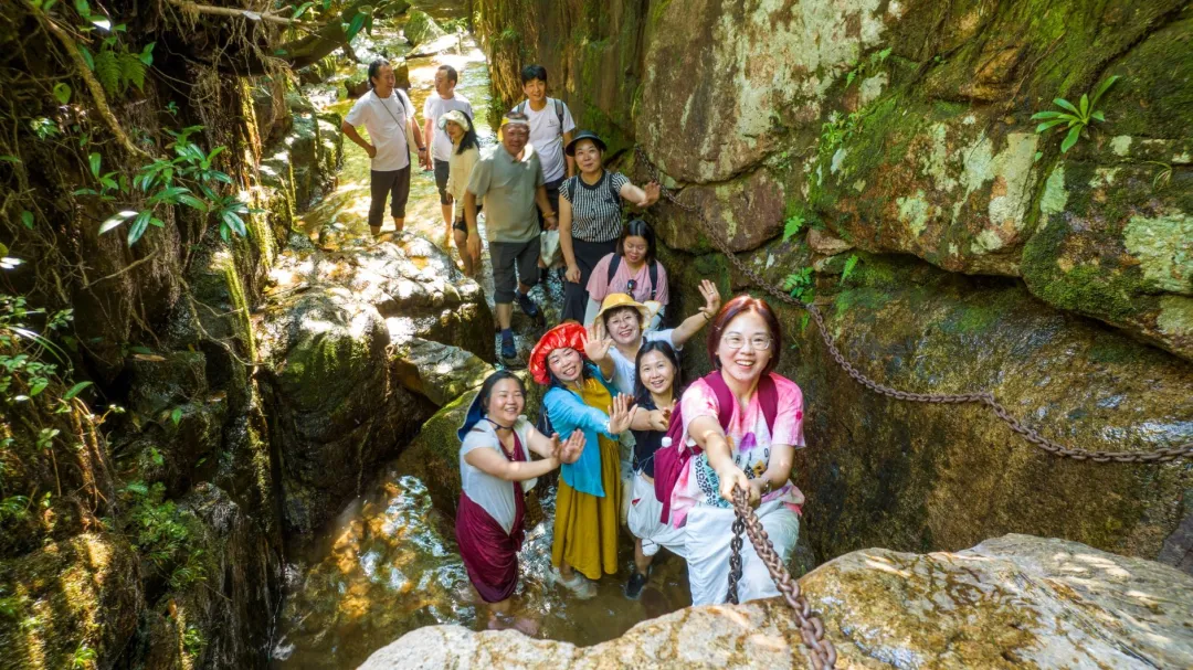 徒步爱好者不容拒绝的峡谷溯溪,景区在自然景观的基础上打造高低落差,让清澈的溪流飞溅而下,溯溪而行,徒步体验直接拉满。