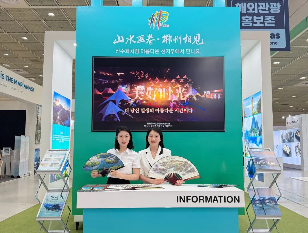 该展会是韩国国内规模最大的旅游博览会,来自全球的45个国家参展,并在此设立500多个展位,今年该展会主题为“全球庆典与发展可能性”,景区通过沉浸式韩文影像播放、发放印有韩语的宣传资料、赠送文创产品等形式,以丰富成熟的旅游产品和多元的服务体验,吸引了众多韩国市民和旅行社前来观摩、咨询,让更多国际友人看到郴州北湖的“山水画卷”。