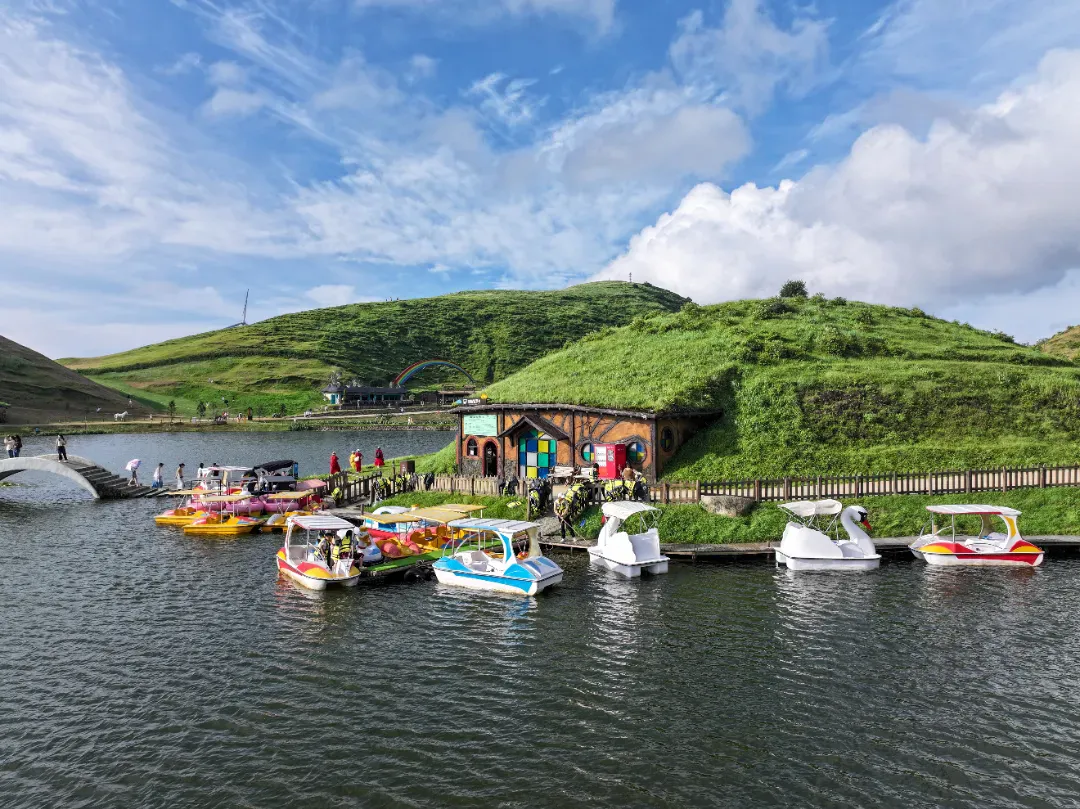 在清澈的湖泊上,与亲友一同游湖泛舟,悠然自得,静下来享受自然之美。