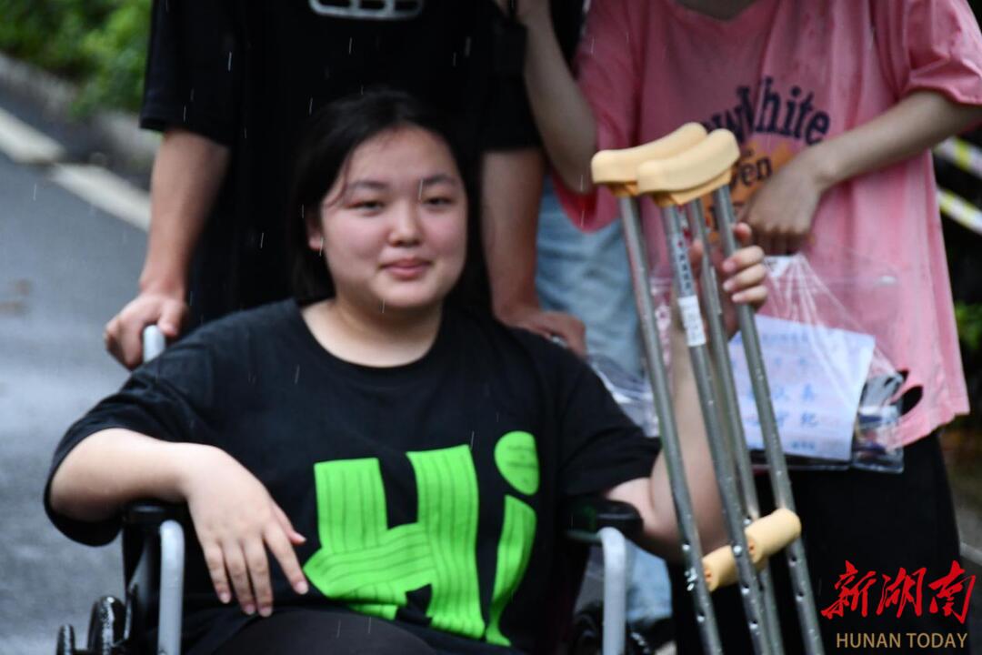 石家乐因腿部骨折,行动不便。她的同班同学罗鑫和何琳主动承担起了“护考”任务,从考前接送、考场引导到考完护送,全程陪伴。
