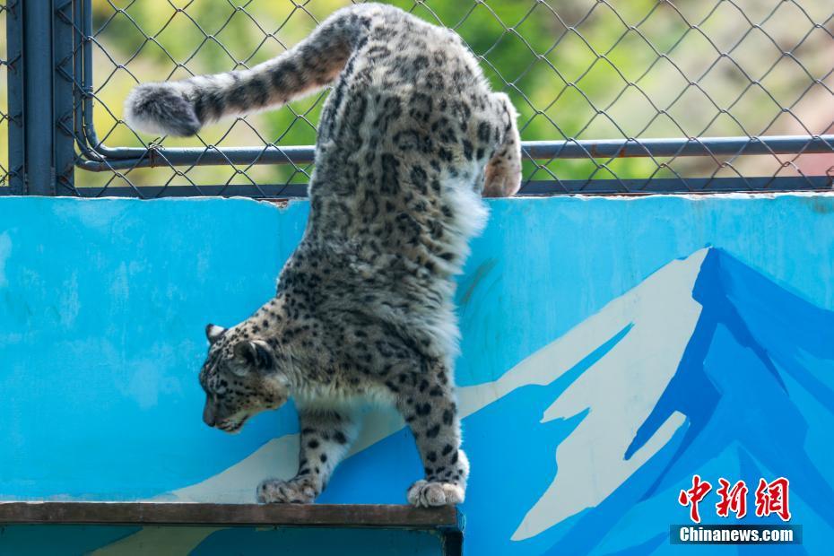 6月10日,中国首只人工繁育成活的雌性雪豹“傲雪”迎来9岁生日。生日当天,西宁野生动物园的饲养员为它定制了特别的棒骨“生日蛋糕”,以鲜嫩肉片和营养棒骨为主料,用胡萝卜精心拼出“生日快乐”字样。图为“傲雪”在馆内散步。中新社记者薛蒂摄