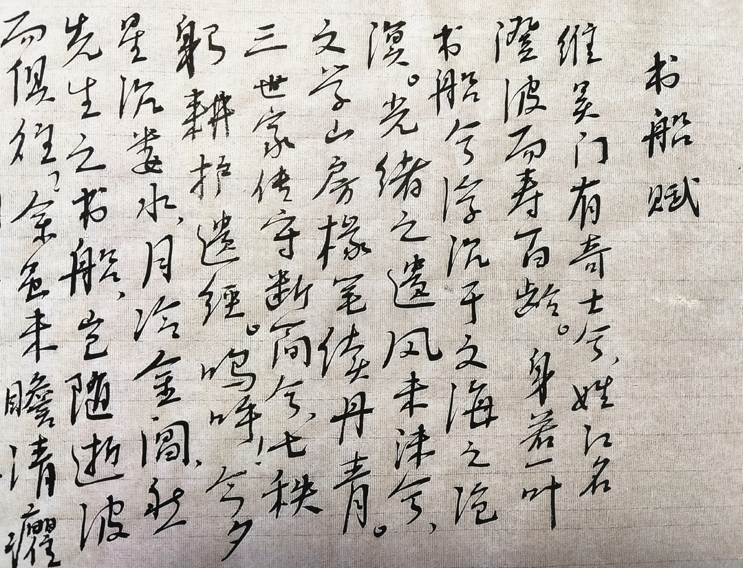 六月十一日下午,惊悉古籍版本学家、苏州文学山房旧书店第三代传人江澄波先生于六月十一日上午在苏州家中安然辞世,享年百岁。一艘载满中华文脉的“书船”,在平静中驶向了永恒的彼岸。余即兴撰书《书船赋》,以寄追思,以彰先生伟绩!