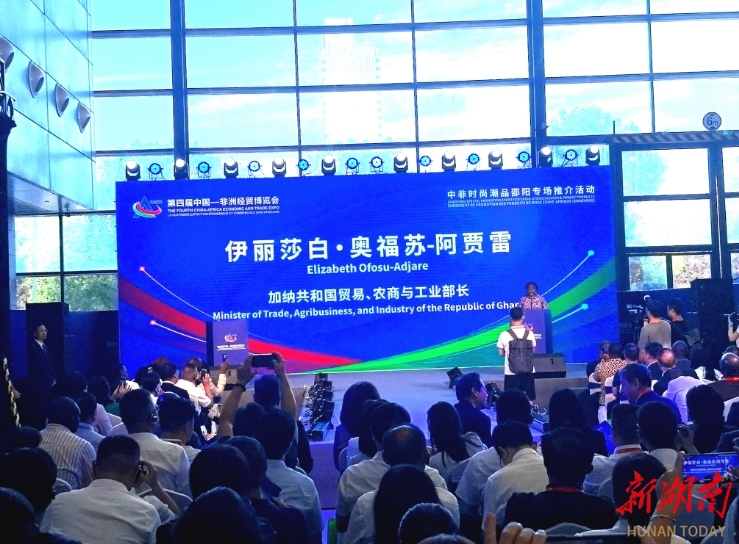 湖南日报6月13日讯(全媒体记者 昌小英 通讯员 甘陶阳 龙庚哲)6月13日下午,第四届中非经贸博览会中非时尚潮品邵阳专场推介活动在长沙举行,邵阳市30余家企业携发制品、箱包、打火机等特色产品精彩亮相。省政协副主席虢正贵,加纳贸易、农商与工业部长伊丽莎白·奥福苏-阿贾雷,邵阳市委书记严华等领导分别致辞。