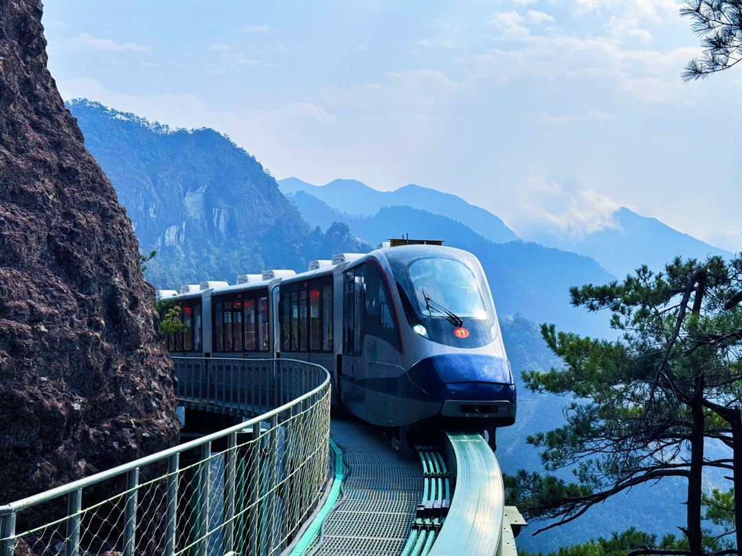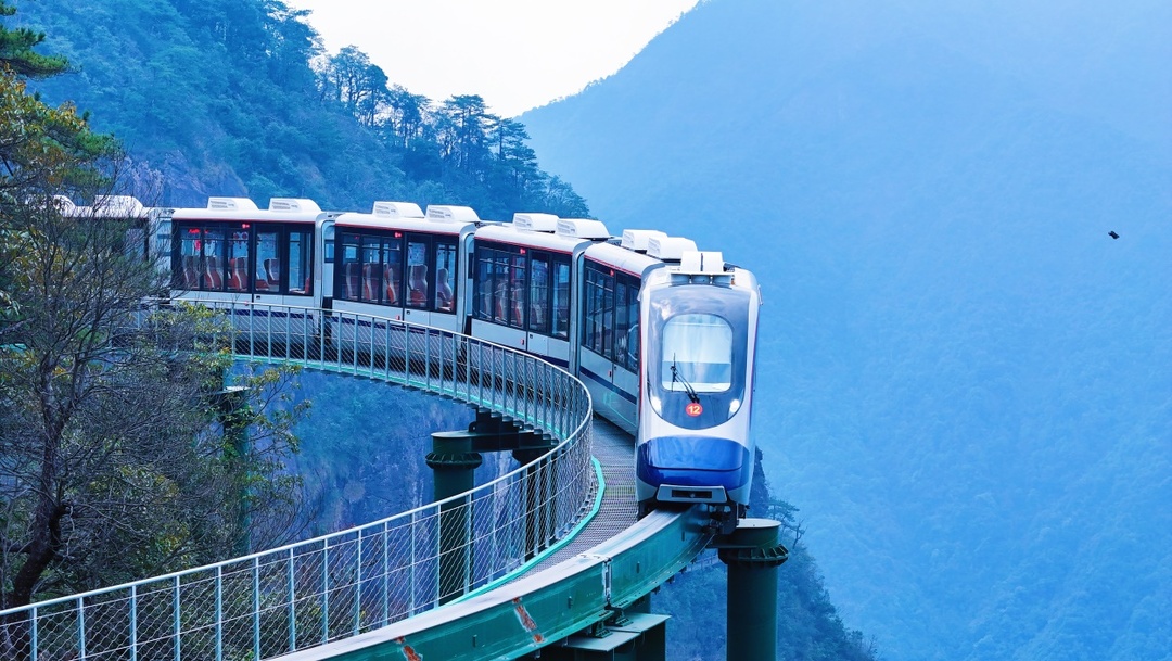 悬崖动车每列由6节车厢组成,可同时容纳56名乘客。这种创新的登山交通方式,以科技取代体力,让游客轻松登顶,深受广大游客喜爱。