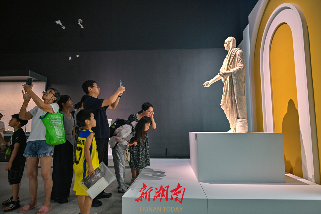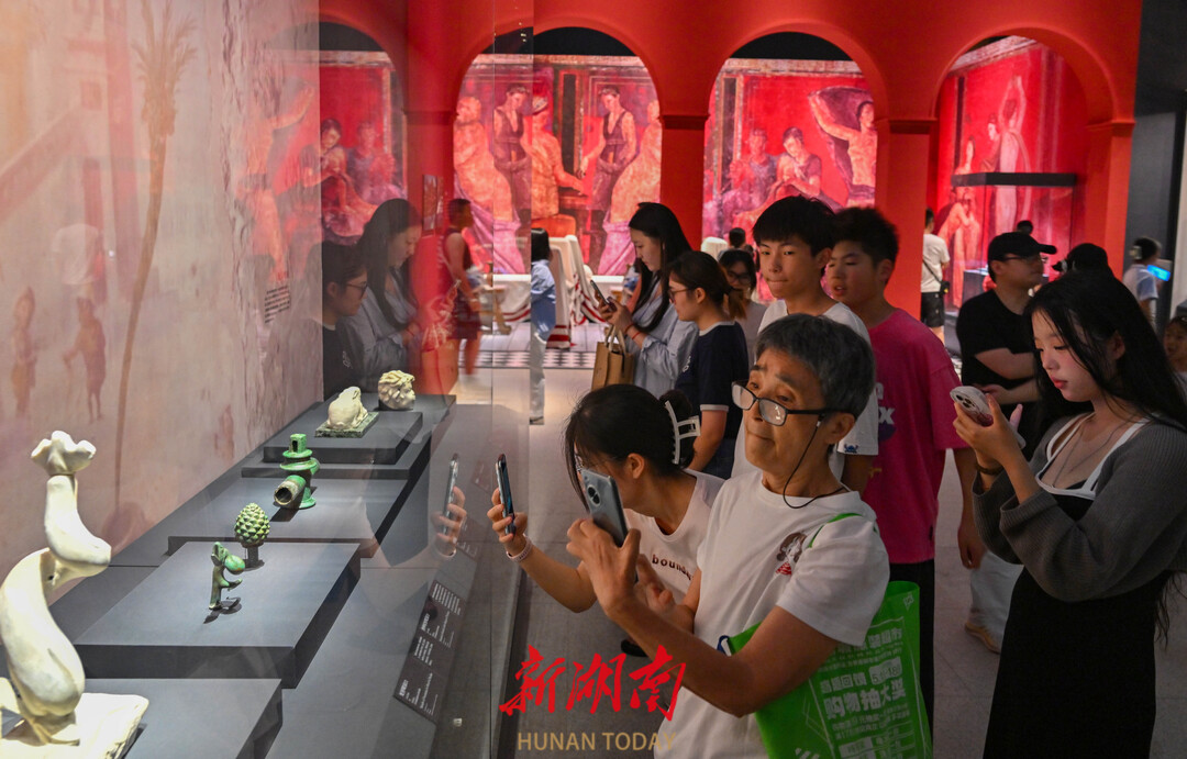 湖南日报·新湖南客户端7月8日讯(记者 龙文泱 摄影记者 郭立亮 通讯员 张艳华 王梓涵 徐孙雅钏)联合国教科文组织评价她是世界上唯一能够提供古罗马城市完整图景的考古遗址。珍贵的壁画、雕塑和日常用品,是这座古城曾经无比鲜活灿烂的证明。7月8日,“遇见庞贝:永恒之城”展览在湖南博物院开展,被维苏威火山大爆发“冻结”的庞贝古城在长沙“苏醒”。