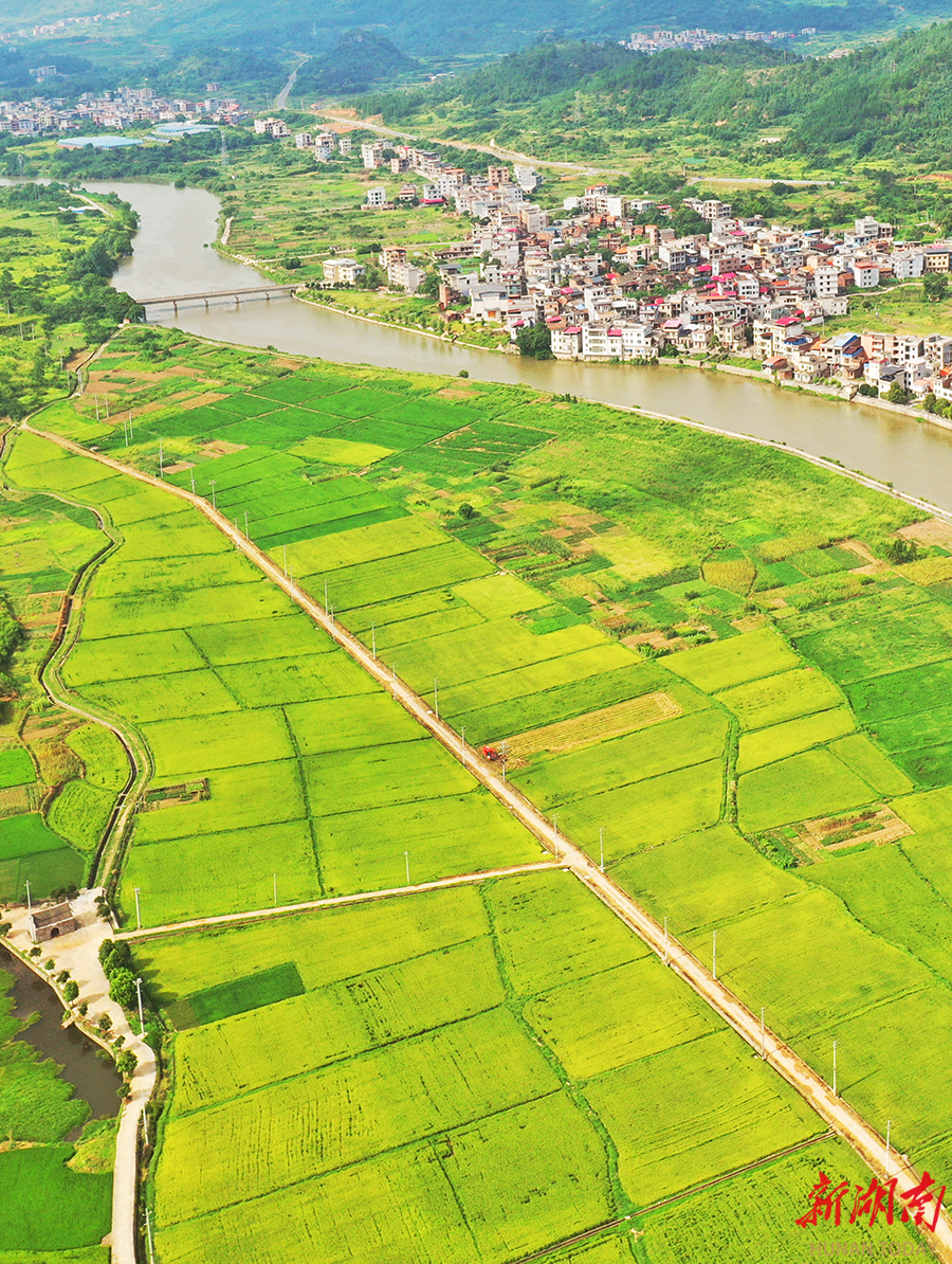 7月14日,嘉禾县珠泉镇荫溪村,成片的优质早稻喜获丰收,金黄稻田与村居、河流、青山相映成趣,构成一幅秀美的丰收画卷。近年来,该县加大美丽乡村建设,大力发展优质水稻、油菜等产业,呈现出乡村优美、产业兴旺、村民富裕的良好发展态势。 黄春涛 摄(湖南图片库)