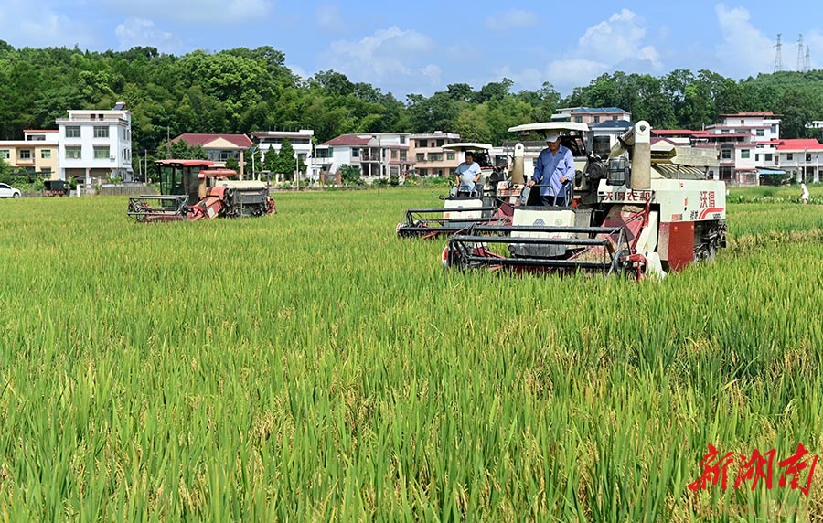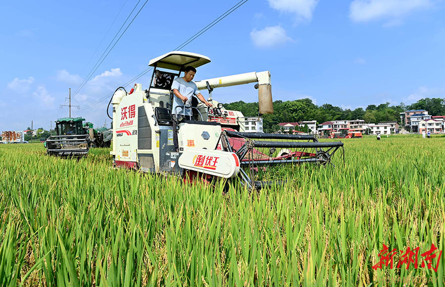 7月14日,洞口县竹市镇炉山村,农机手驾驶收割机在帮助种粮户收割早稻。当前,该县29万亩早稻已进入收割期,当地农机合作社、农机大户积极为种粮户开展机械作业收割服务,提高收割效率,降低生产成本,确保夏粮颗粒归仓。 滕治中 滕绍忻 摄影报道(湖南图片库)