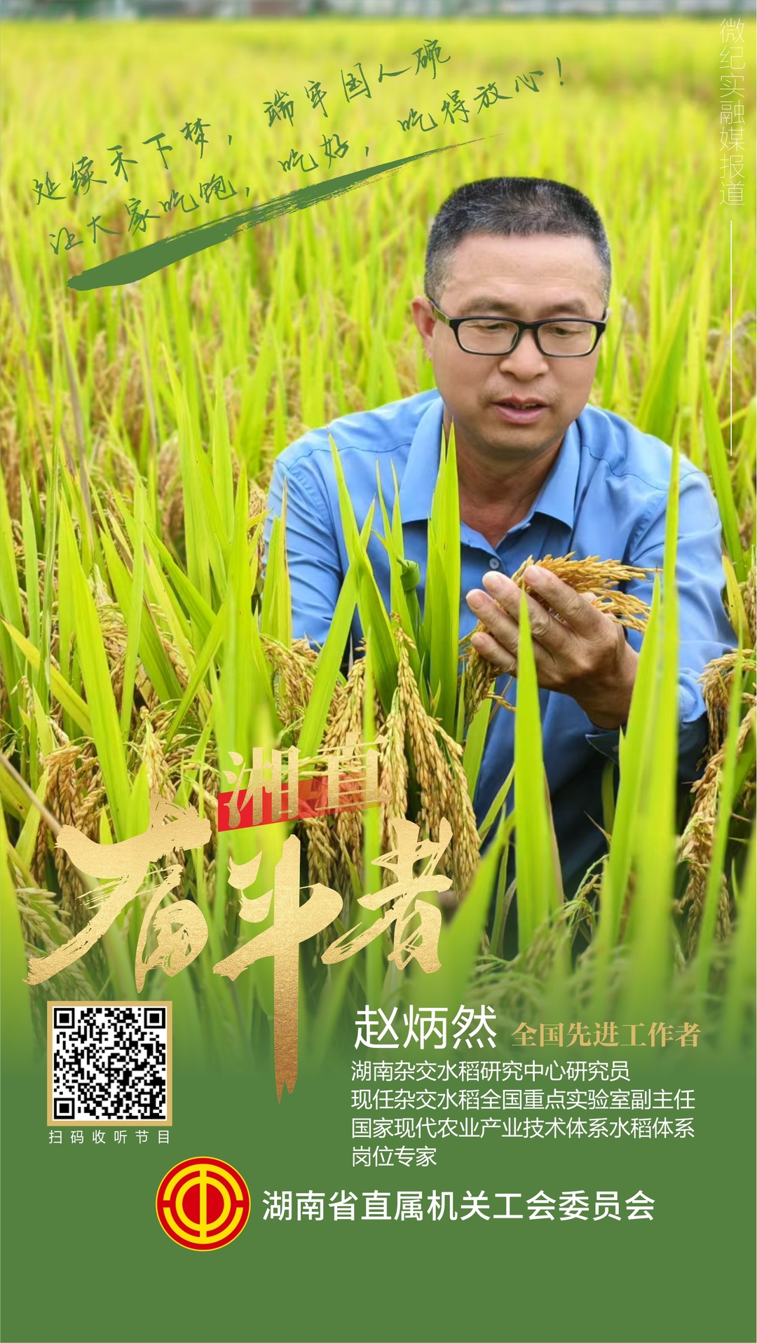“要让稻米更好吃、更放心!”——赵炳然把袁隆平院士的嘱托化作田间地头的行动。37年攻关,他让镉低积累水稻量产,让育种技术迈上新阶,更教会年轻人:“科研不是纸上谈兵,而是脚踩泥土、心怀家国,让每一粒米都带着责任的温度。”