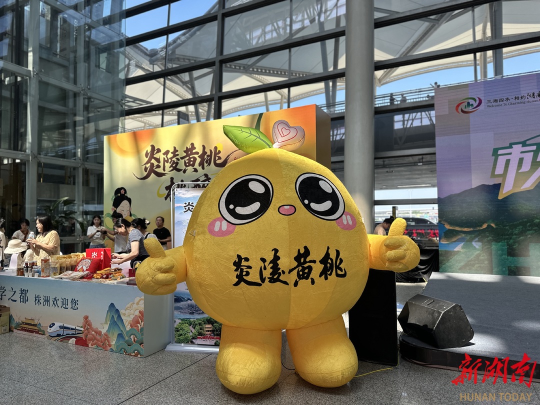 株洲文旅用美食打开旅客的味觉。活动现场,拖着行李的远方游客邂逅了热情好客的株洲文旅。身着民族服装的姑娘捧着黄桃欢迎试吃,端着一杯杯炎陵红茶绿茶欢迎品尝,一解客人旅途的疲乏。株洲礼物还带来精致包装的小零食,打开了旅客的味蕾。
