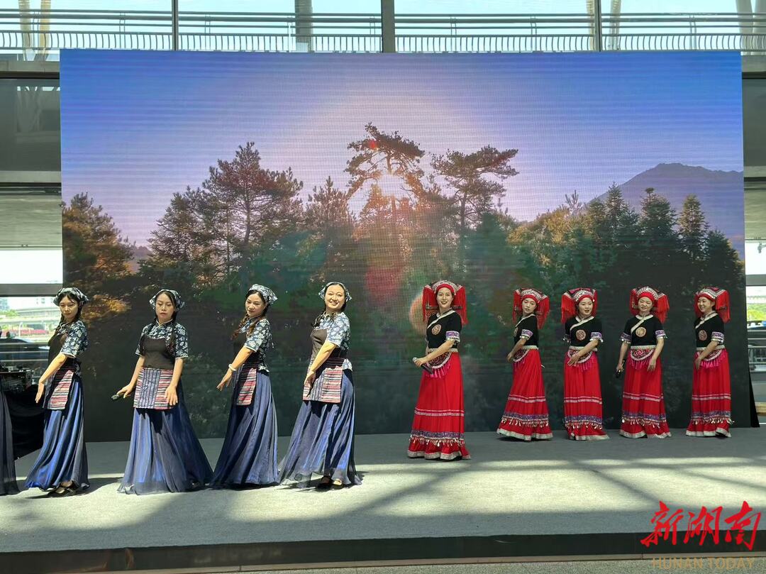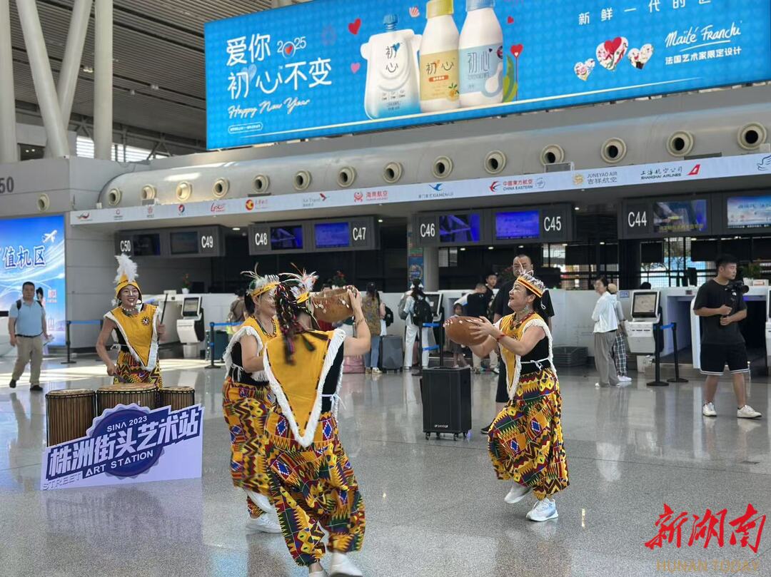株洲文旅用极具地域特色的歌舞,留住旅客的脚步。活动演出丰富多彩,让机场大厅变成了欢乐的海洋。歌舞《炎帝颂》的故事让观众回望千年;《客家山歌洒洒唱》和《神农茶歌》让人听到了美妙的山歌,也从大屏幕上看到了株洲山水的美丽景色;《国彩醴陵》呈现了千年瓷都的烟火和窑火,美不胜收;《思鬼情歌》高亢嘹亮,穿透了机场,引得很多旅客停下脚步,瞩目叫好;株洲方特演出了《熊出没》情景剧,胖胖的熊大开始了减肥,进行身材管理,喜感十足;而《我要夏天》的歌舞更是充满了动感,风情火辣。街头艺术站的非洲鼓表演走到了旅客中间,用节奏明快的打击音乐,让旅客的步伐也走出了快乐的节奏感,炫酷的街舞在游客中间即兴表演,更是引起了尖叫声不断。