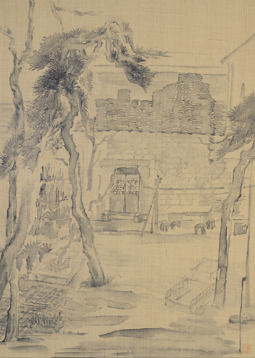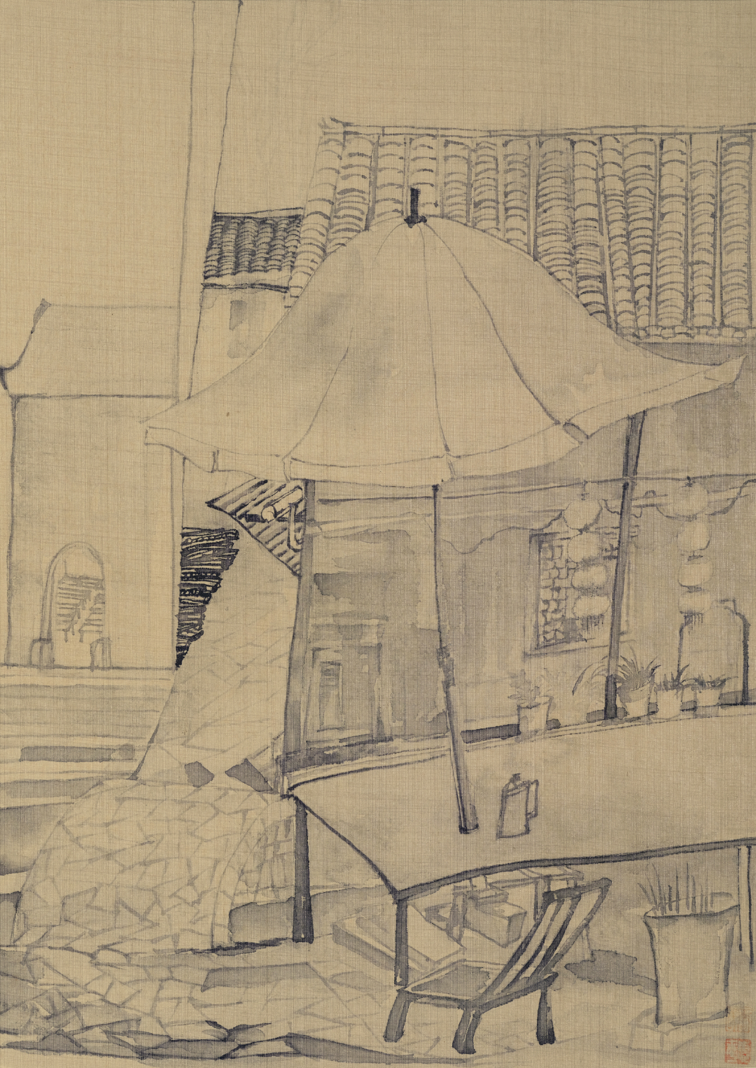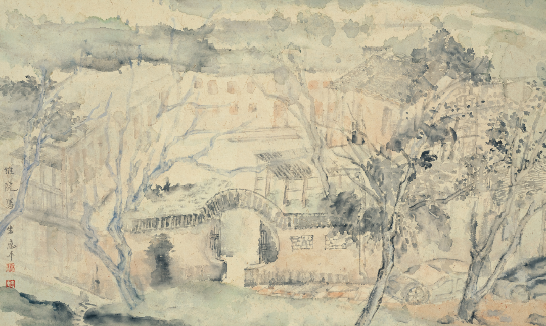 《雅院写生》 39cm×62cm 纸本设色 2023年