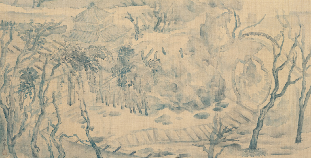 《轻烟拂过》 35cm×60cm 绢本设色 2023年