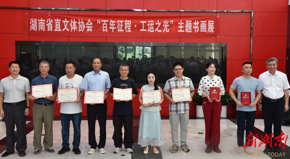 新湖南客户端7月25日讯(记者 陈小薇 实习生 唐诺影 周胤嘉)为庆祝中华全国总工会成立100周年,引领湖南省直职工深切感悟工运精神、汲取奋进力量,7月25日,由湖南省直单位职工文化体育协会主办、湖南省文化馆承办的“百年征程·工运之光”省直单位职工书画作品展在湖南省文化馆开展。省直和中央在湘单位干部职工200余人参加。