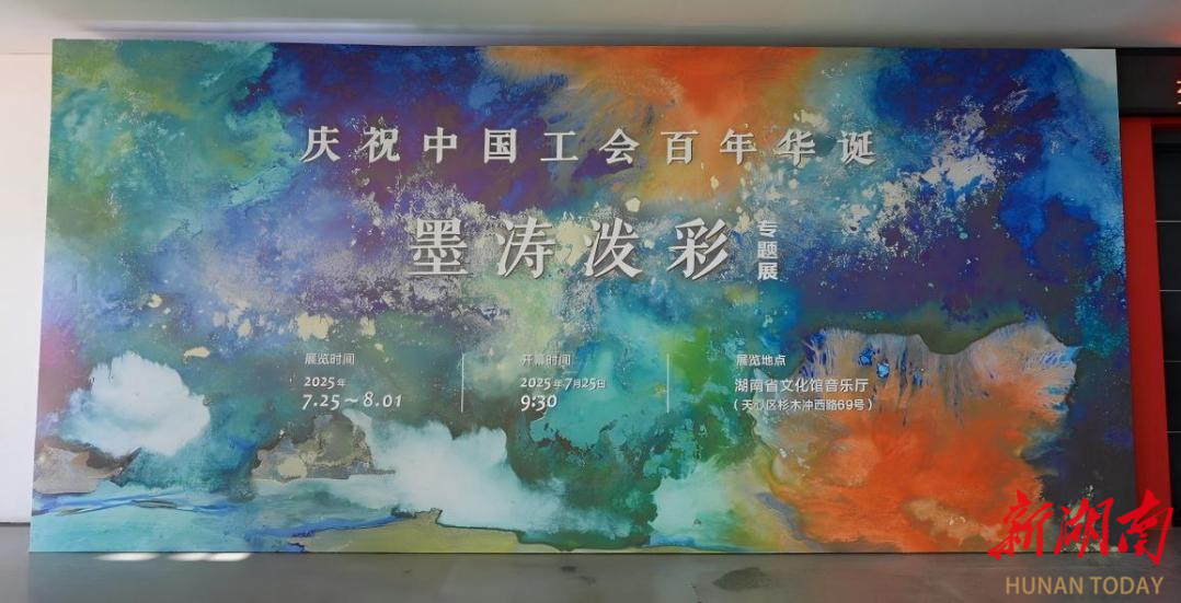 此外,泼彩艺术家墨涛的《墨涛泼彩专题展》同期在省文化馆开展。该展览以水墨艺术为载体,聚焦百年工运中的经典故事,用灵动笔墨捕捉劳动者的智慧光芒、汗水印记与奋斗荣光。