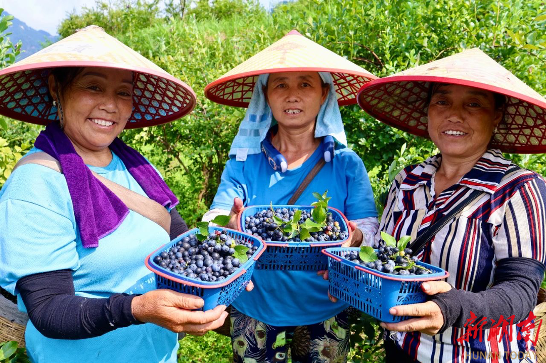“快来尝尝这刚摘的蓝莓,甜津津的!我们这耀鑫蓝莓谷,每到夏天都是满满的游客,不光能摘果子,还能体验农家菜,日子越过越甜喽!”7月的湘西土家族苗族自治州古丈县岩头寨镇,蓝莓进入盛产期,蒿根坪村的蓝莓园里,村民们正忙着分拣刚摘下的鲜果,游客穿梭在果树间体验采摘乐趣,欢声笑语此起彼伏。