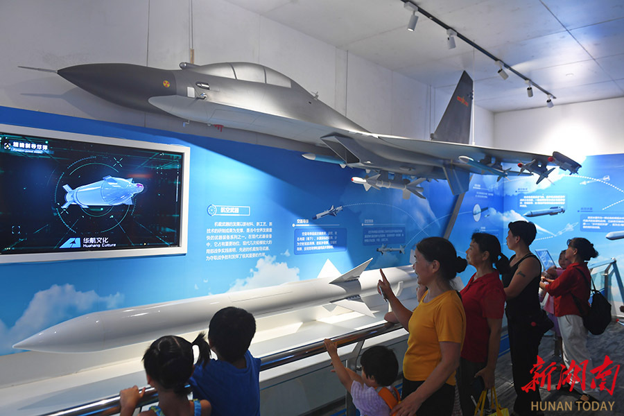 8月5日,观众在长沙航空职业技术学院湖南航空馆参观。正值暑期,不少市民专程前来参观,通过近距离接触各类航空航天设备,学习国防军事知识。 湖南日报全媒体记者 徐行 摄