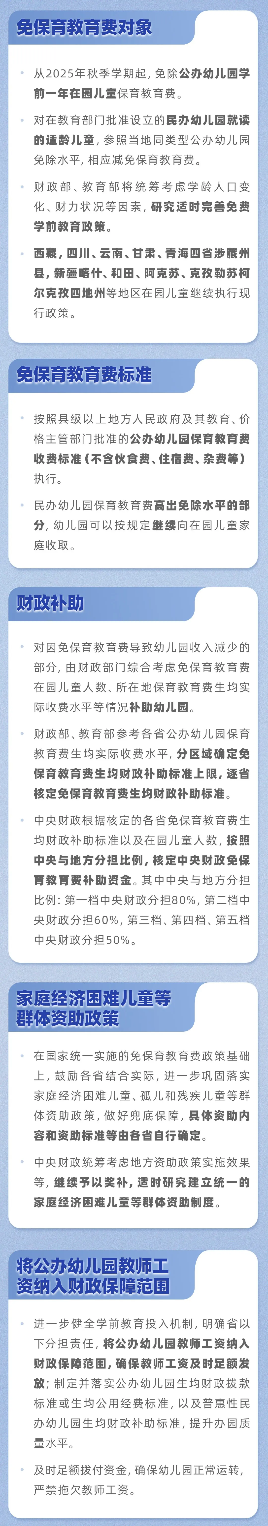 5日,国务院办公厅印发《关于逐步推行免费学前教育的意见》。从2025年秋季学期起,免除公办幼儿园学前一年在园儿童保育教育费。免除公办幼儿园学前一年保教费有哪些好处?政策出台,谁是直接受益者?