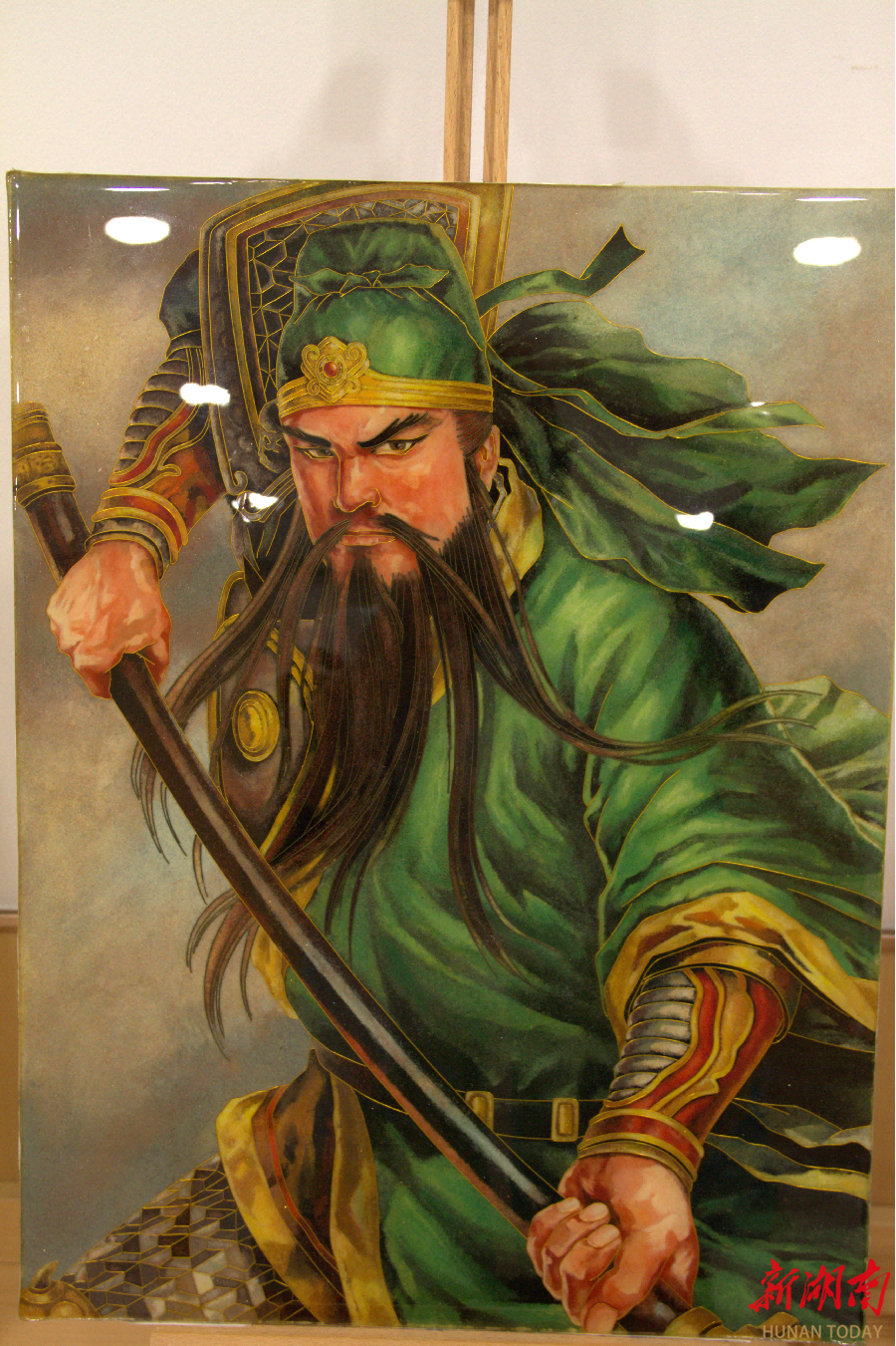 图为五溪非遗园内包俊杰展示的掐丝珐琅作品《掐丝珐琅·关圣像》
