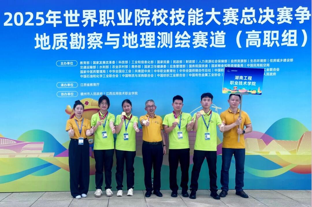 湖南日报8月30日讯(通讯员 熊威 李勇)8月25日至30日,2025年世界职业院校技能大赛总决赛地质勘察与地理测绘赛道(高职组)争夺赛在江西应用职业技术学院举行,来自全国的105支队伍630余名师生参赛。其中,湖南工程职业技术学院自然资源学院熊威、郑平两位老师指导的资源勘查类专业的4位学生张振强、朱婧、王树湘、吴云龙斩获金奖。