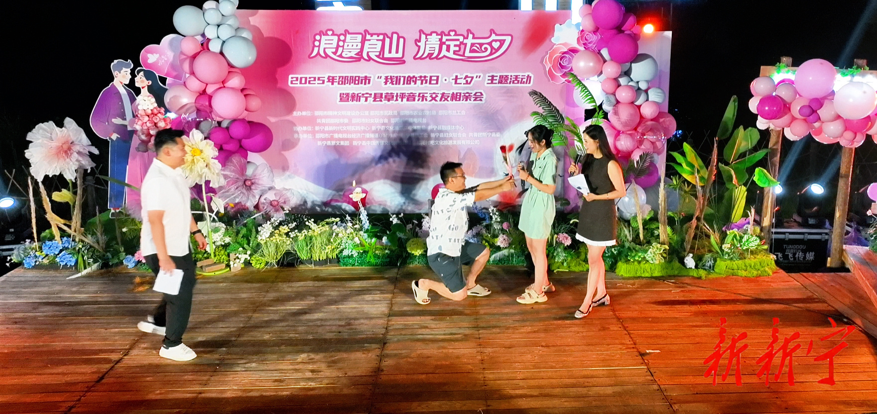 8月29日晚,“浪漫崀山·情定七夕”2025年邵阳市“我们的节日·七夕”主题活动暨新宁县草坪音乐交友相亲会在崀山舜皇里举行。来自全市的近百名单身男女齐聚崀山,在丹崖碧水间奔赴一场浪漫之约,以实际行动倡导“轻彩礼重真情”的婚恋新风尚。