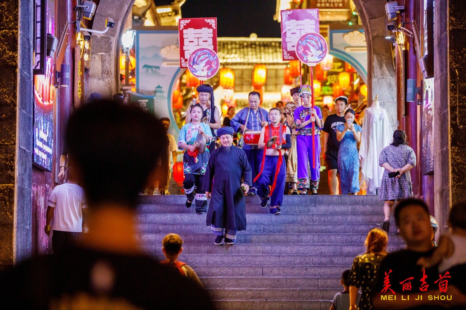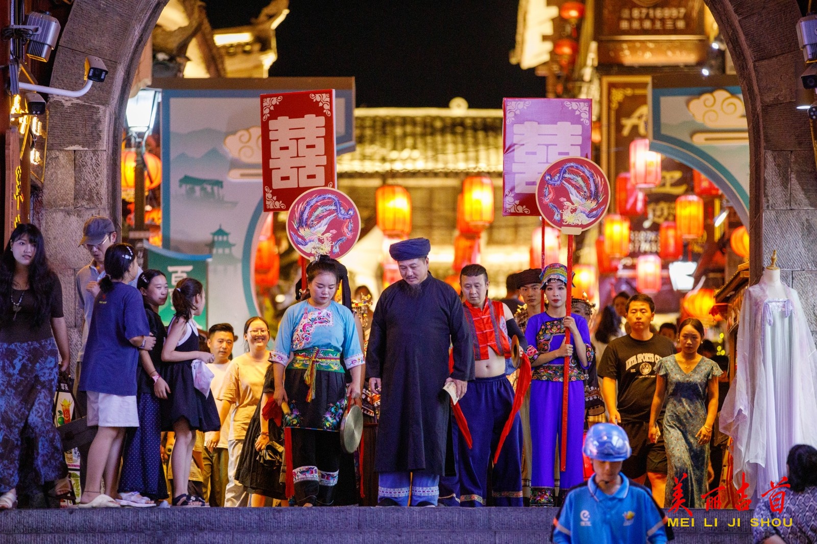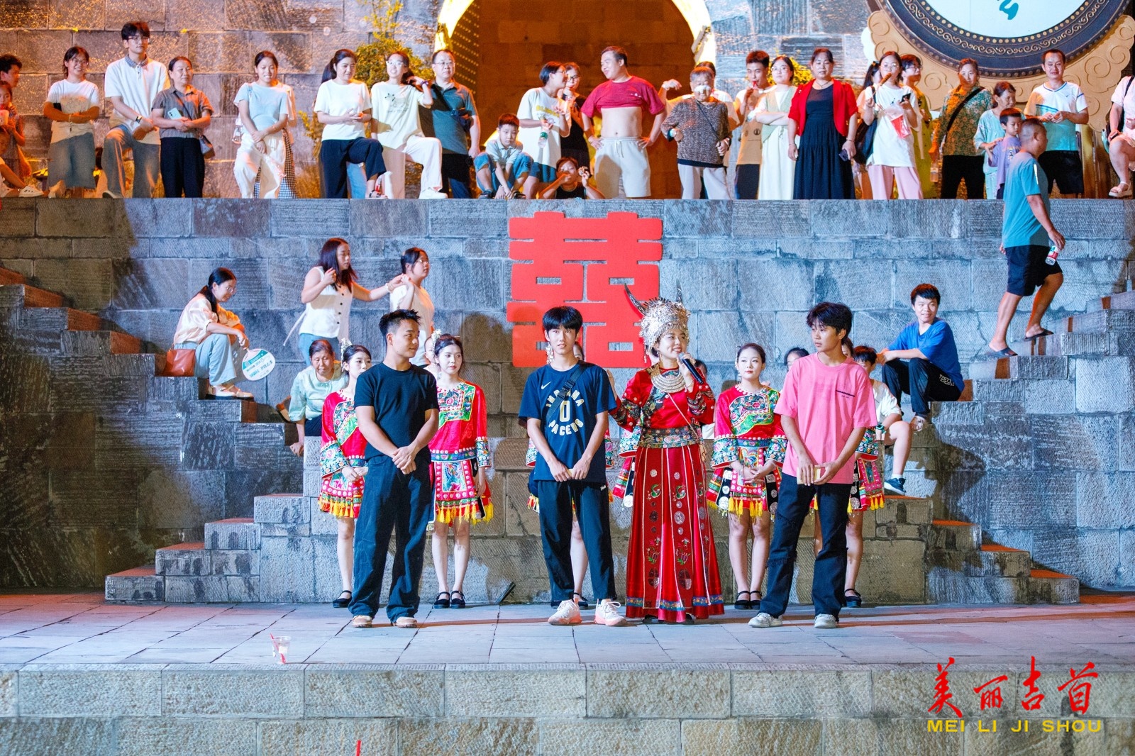 8月29日七夕夜,吉首市乾州古城举办“情定溶江”活动,游客化身“新郎”体验苗家婚俗,闯趣味关卡迎娶“新娘”,现场热闹非凡,尽显苗家婚俗魅力。