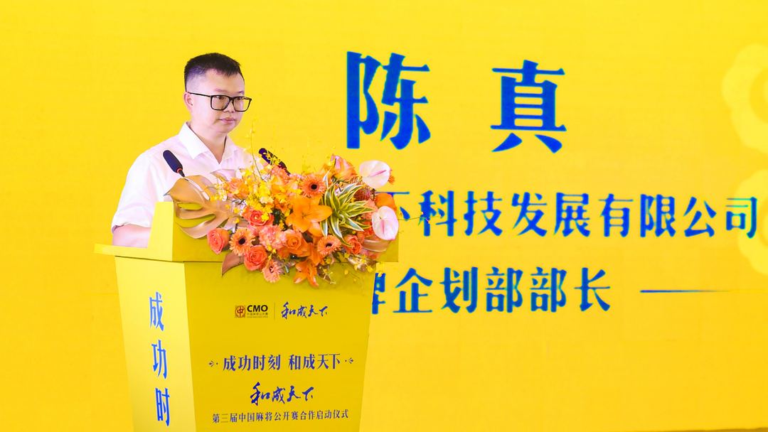 海南和成天下科技发展有限公司品牌企划部部长陈真在发言中阐释了“成功时刻,和成天下”的品牌理念。他表示,麻将竞技不仅考验选手的技巧与心态,更蕴含了“和谐共融,智慧共赢”的东方智慧。和成天下希望通过赞助本届赛事,传递积极进取、勇于拼搏的体育精神,陪伴每一位选手成就自我的“成功时刻”。