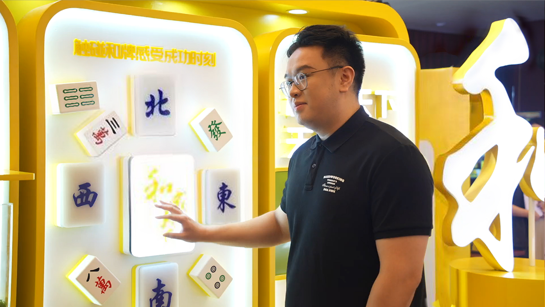 冠军选手葛睿以今年全球麻将冠军联赛中国区总决赛的关键对局为例,分享了对“成功时刻”的理解。他表示,麻将不仅考验牌技,更考验心态与智慧。越是关键牌局,越需冷静应对,“以'和'的智慧与定力,方能‘成’就卓越。”他特别提到,赛前触摸“和”字装置的仪式,给自己带来了更多胜利的期许:“摸了‘和’字,可能等一会和牌就会更多。”