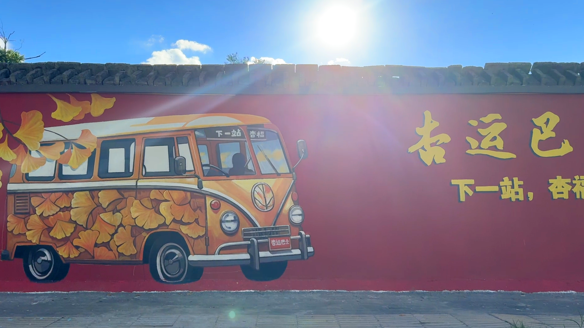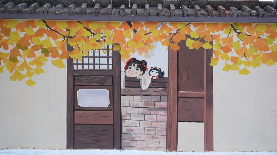 板块二是 171 米长的银杏主题油画风格墙绘,画作以金黄的银杏为主要意象,通过细腻的笔触与丰富的色彩,生动还原了银杏的唯美姿态,营造出浪漫雅致的氛围,为街道增添了浓厚的艺术气息。