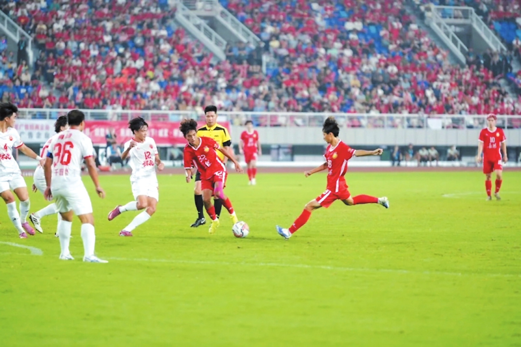 9月14日晚,湖南省足球协会超级联赛(湘超)迎来一场焦点战役——岳阳队对阵怀化队。最终,岳阳队以2∶0获胜。这场比赛中,岳阳市外国语学校的13名学生入选“岳家军”大名单,成为赛场上最年轻的生力军。其中,唐康、杨志伟、刘思源、朱翔进入首场比赛最终23人名单,唐康和杨志伟更是入选首发阵容,代表岳阳队披挂上阵。