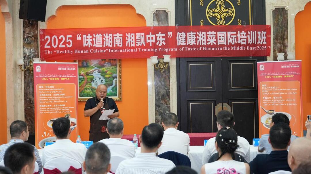 9月8日下午,2025“味道湖南·湘飘中东”健康湘菜国际培训班在迪拜中国饭店举行,中国饭店、留贵湘、鲜遇湘及中东地区的厨师和餐饮从业者30余人参与培训。培训班上,刘鹏作为培训师资代表发表动员讲话,并现场开展经典湘菜教学活动。