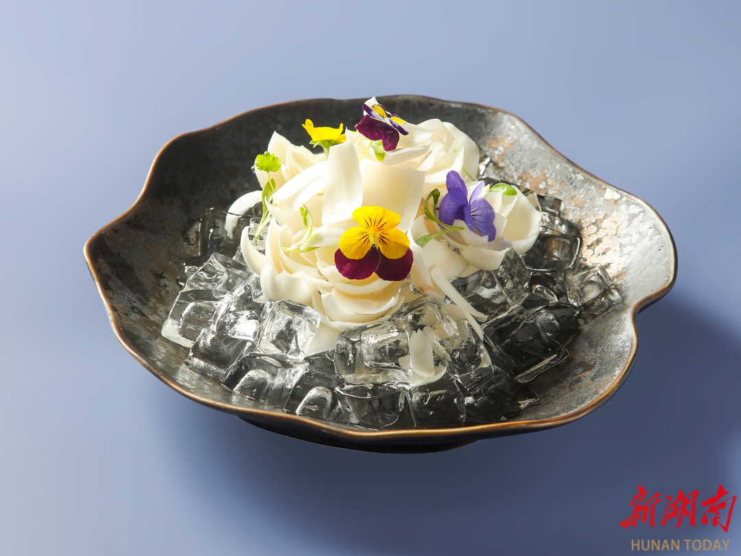 转折发生在2004年,冰火楼以一场别开生面的“鲜花美食节”打破陈规,彼时,长沙媒体记载了这样的场景:冰火楼大厅内用上了一万多朵鲜花作为装饰,服务员的头上戴着花环。胡艳萍带领团队大胆地将可食用鲜花巧妙融入传统湘菜:“闭月羞花”,用芦荟和玫瑰花裹粉炸制而成;“冰百合”,吃的就是冰镇百合花瓣。食客们看到精致的摆盘,闻到淡雅的花香,尝到改良后的清爽滋味,这才惊觉,原来湘菜也可以如此精致典雅。