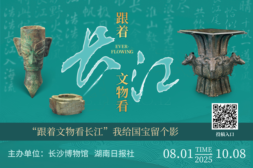 参观同时,还可以参加由长沙博物馆、湖南日报社共同主办的“跟着文物看长江”我给国宝留个影(点击活动名称,扫描或长按文末活动海报二维码即可参与),拍摄制作“不尽长江滚滚来——长江与中华文明展”展品、展厅的照片、视频,或制作创意图片、海报、短视频等上传到新湖南客户端的活动平台(请注意,别的展览不行哟)即可。