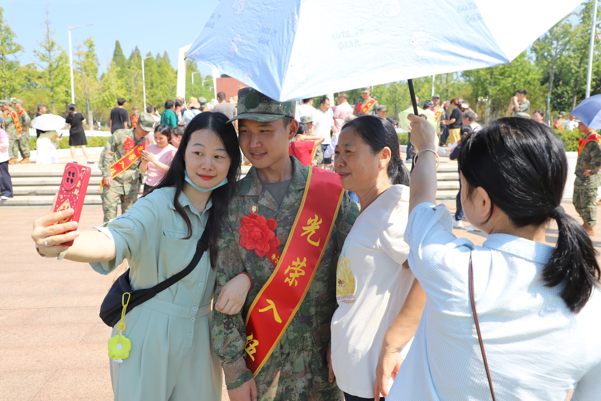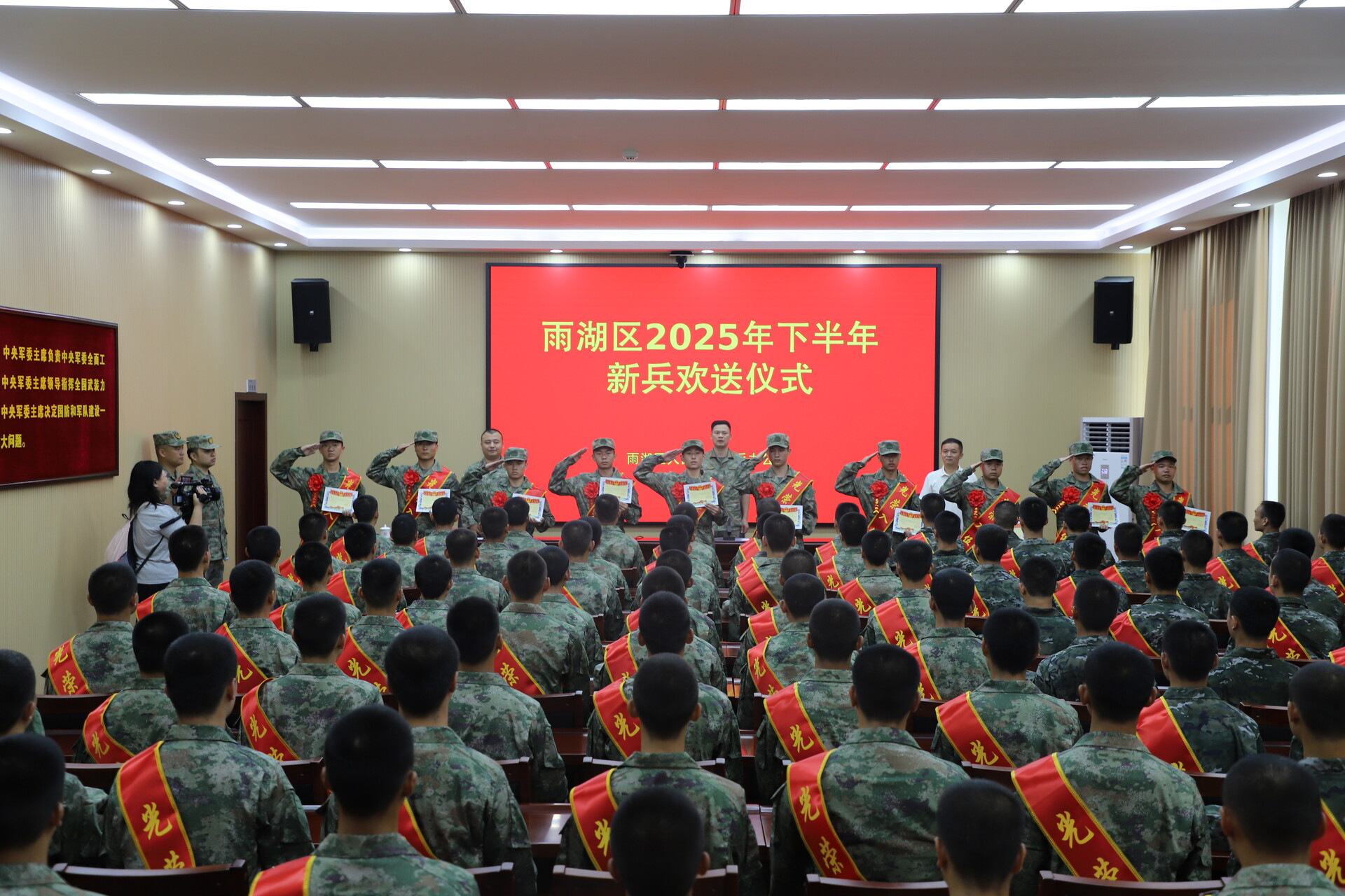 这是雨湖区征兵办连续第四年举办“我是主席家乡兵,建功立业赴军营”新兵欢送活动,现场气氛热烈而庄重,新兵们身着戎装,英姿飒爽,眼神中满是对军旅生涯的憧憬与报效祖国的决心。