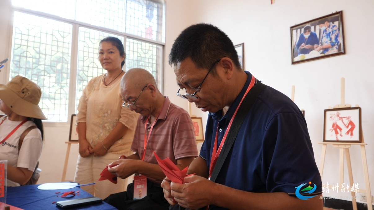 ▲自驾游车友体验非遗剪纸(孙文月 摄)