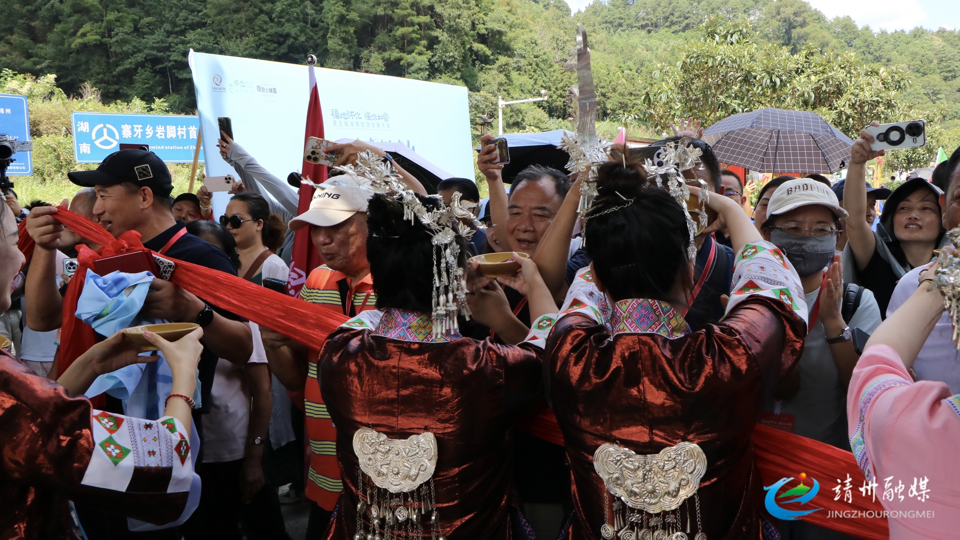 活动现场,“拦门酒”欢迎仪式热闹非凡。伴随着悠扬的芦笙,热情好客的村民们以杨梅汁代酒欢迎远道而来的车友们。侗寨内,车友们兴致勃勃地来到风雨长廊,体验侗家合拢宴、杨梅汁“高山流水”敬酒习俗及“转转杯”互动,现场民族风情浓郁、气氛热烈。