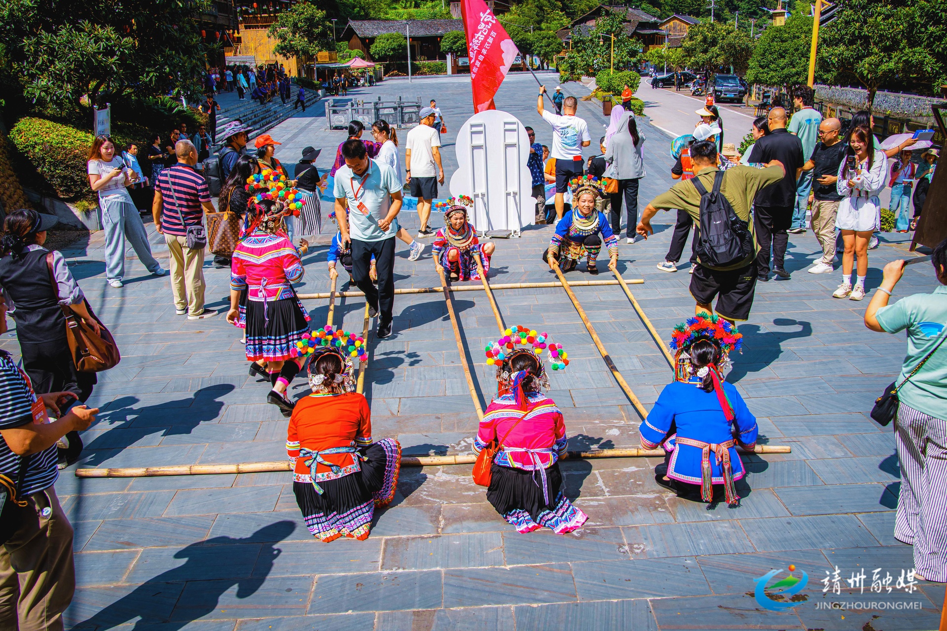 ▲车友在岩脚侗寨体验“高山流水”(吴承俊 摄)