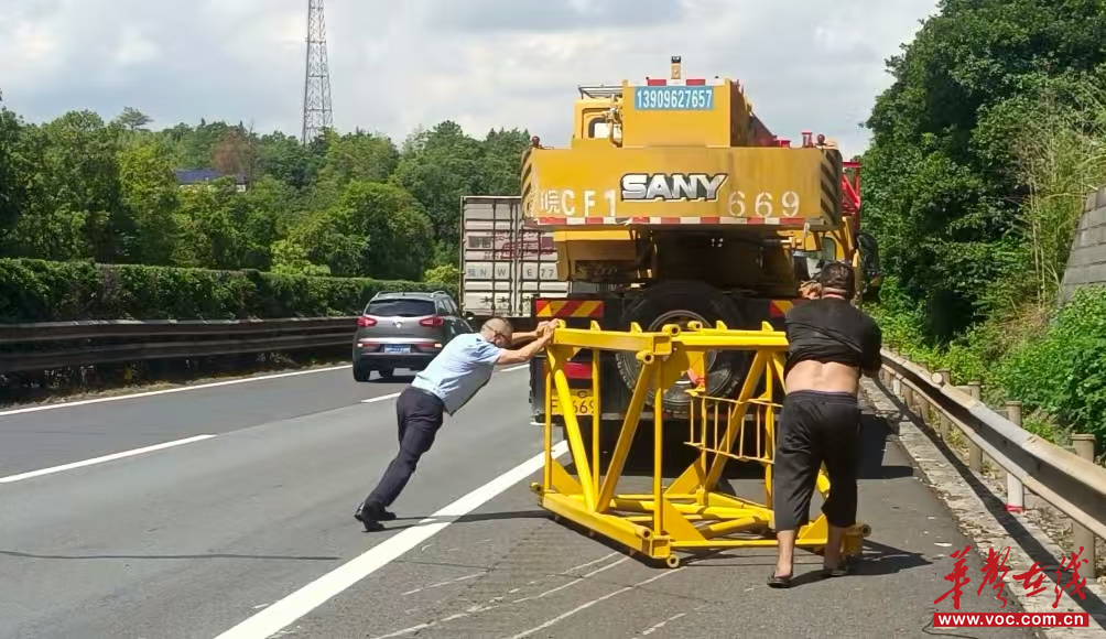 执法人员指挥将铁架拖至应急车道上。通讯员供图