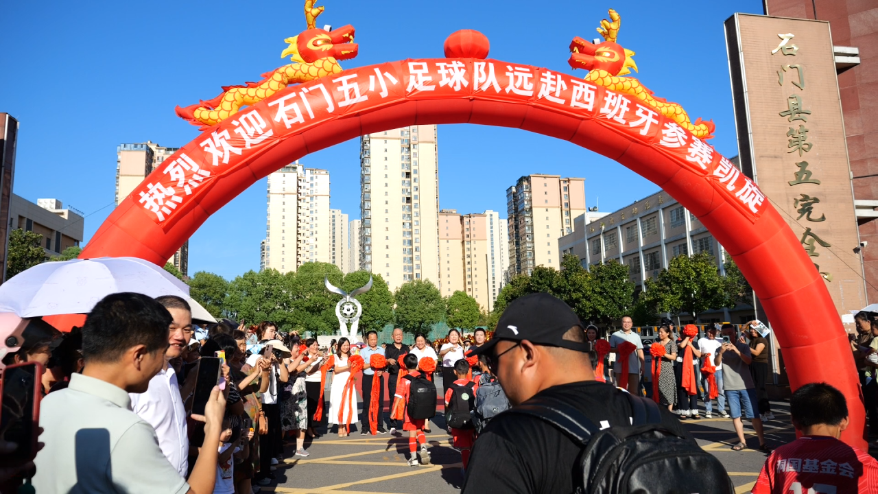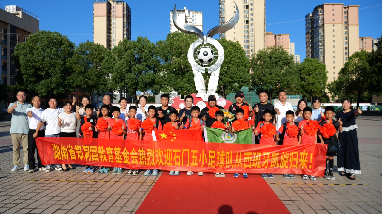 湖南日报·新湖南客户端9月18日讯(通讯员 唐小婷 牟宇飞)9月16日下午4时,在西班牙圆满完成BRAVA CUP国际青少年足球锦标赛征程的石门县第五完全小学足球队全体队员与教练,乘坐大巴车顺利抵达家乡。石门五小的师生们早已在校门口列队等候,用最热烈的掌声与欢呼声,迎接这支载誉而归的“足球小将”队伍。