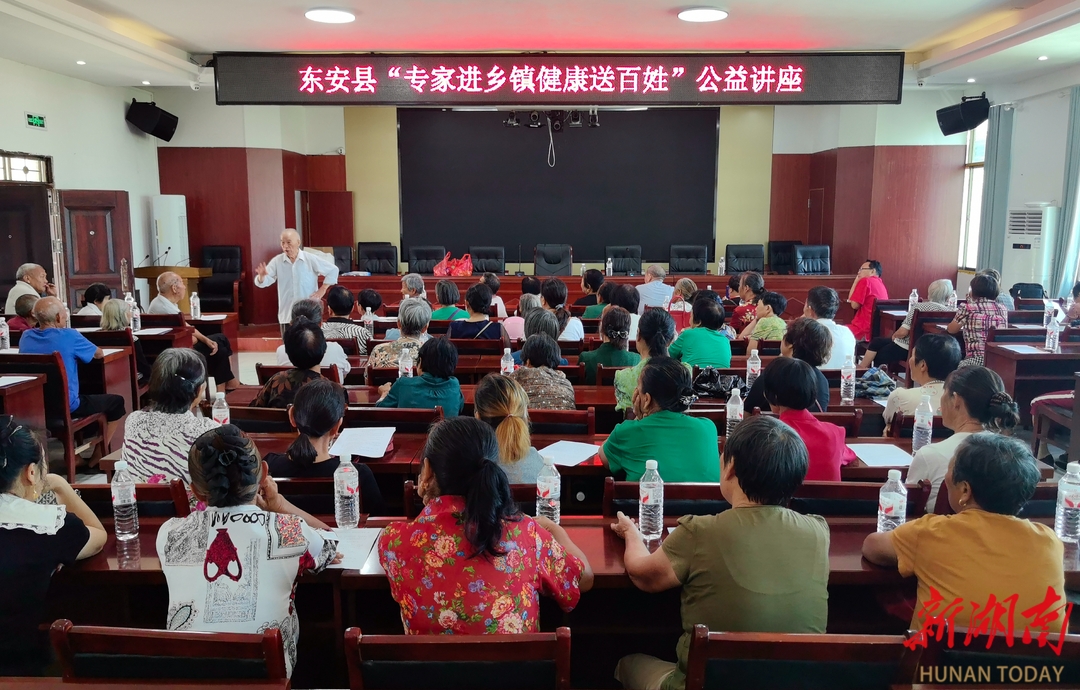 湖南日报·新湖南客户端9月18日讯(通讯员 张雄)9月15日,东安县南桥镇政府4楼会议室座无虚席,该县科协在此举办“专家进乡镇 健康送百姓”公益讲座,100余名老年人认真聆听湖南省老科协养生专家、东安县最美科技工作者唐国民的精彩讲座。