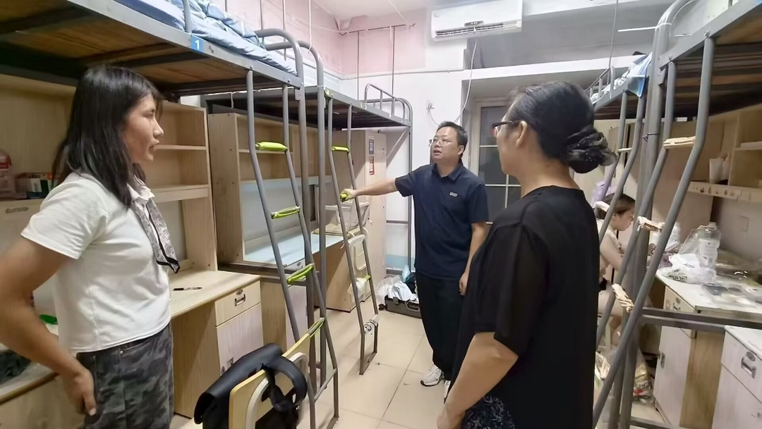 为全面了解2025级新生适应状况,帮助新生更好融入大学生活,近日,长沙民政职院财经管理学院党总支书记张流柱、党总支副书记李明及新生班级辅导员一行深入新生宿舍,开展走访慰问活动,为同学们解答初入校园的各类困惑与问题,传递学校的温暖与关怀。