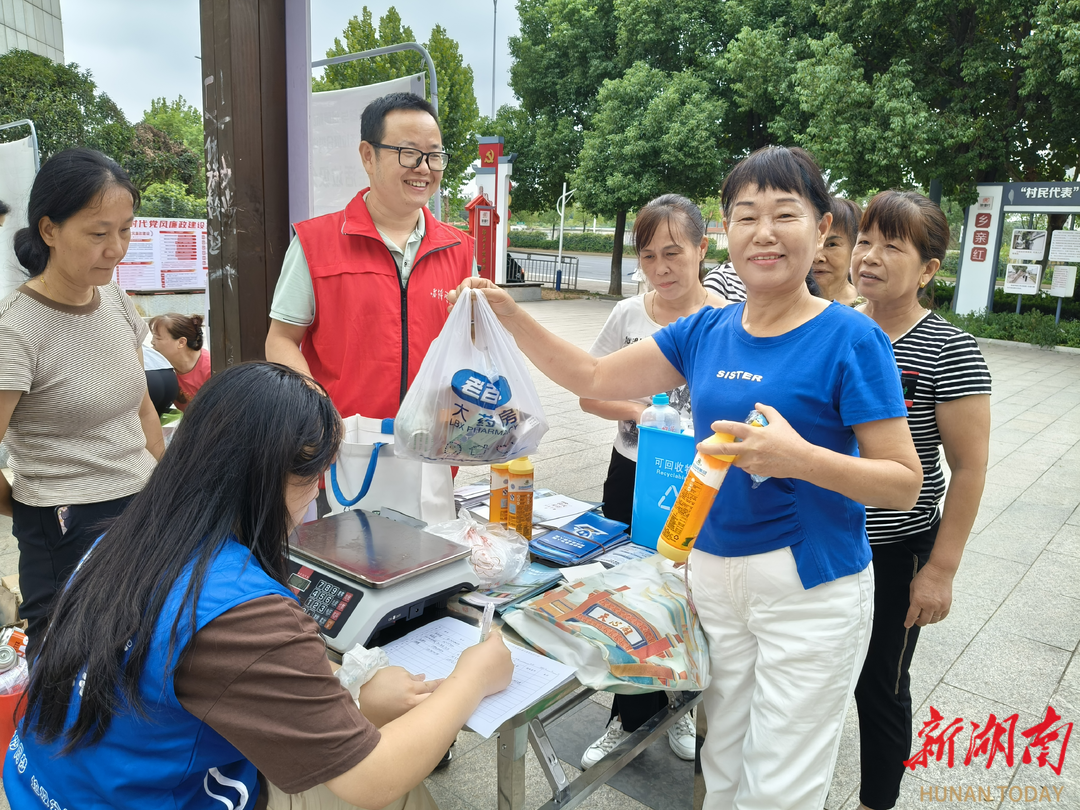 活动现场,在“过期物品兑换生活用品”区域,志愿者有序引导村民排队登记,一边协助兑换,一边细致讲解有害垃圾随意丢弃的危害:“过期药品里含有的化学成分会污染土壤和水源,只有集中回收处理才安全。”村民连阿姨提着一袋过期药品赶来,兑换到一瓶洗洁精后笑着说:“以前过期药品不晓得怎么处理,现在既能换实用东西,又能保护环境,太实在了!”仅两个小时,兑换点便回收有害垃圾近百件,发放洗洁精、垃圾袋等生活用品40余份,以“兑换激励”精准解决了村民处理过期物品的“烦心事”。