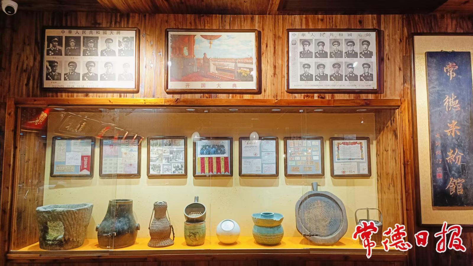 橱窗里的老式米粉制作工具和“常德米粉馆”老招牌