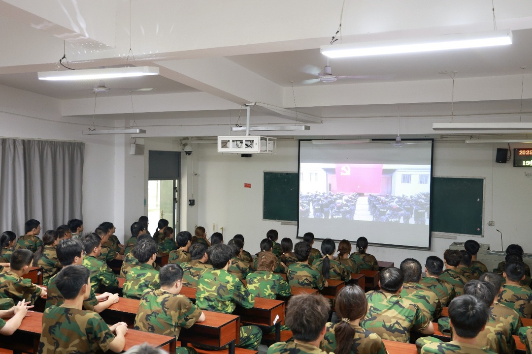 上午9时18分,防空警报在校园上空响起,全体新生肃立默哀三分钟,向在抗日战争中牺牲的革命先烈和遇难同胞致以深切哀思。默哀结束后,师生共同观看历史纪录片《铭记九一八》。影片通过珍贵史料真实再现“九一八”事变的历史场景,让同学们深刻认识到和平来之不易。